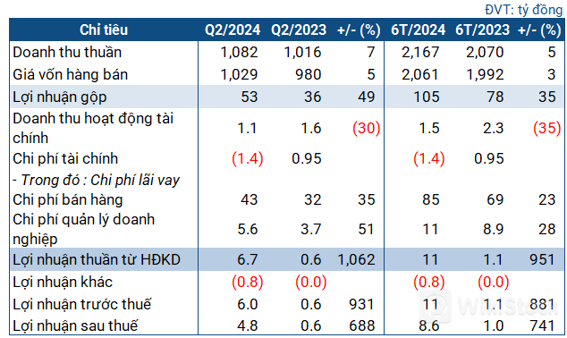 Các chỉ tiêu kinh doanh của Comeco trong quý 2/2024![]() |