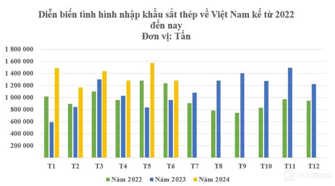 Lũy kế 6 tháng đầu năm Việt Nam nhập khẩu hơn 8,2 triệu tấn sắt thép, tương đương hơn 5,9 tỷ USD, tăng mạnh 48% về lượng và tăng 25% về trị giá so với cùng kỳ năm trước. Giá nhập khẩu trong tháng 6 đạt 727 USD/tấn, giảm 17% so với tháng 6/2023.