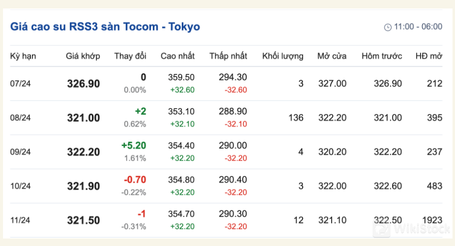 Tại Sở giao dịch hàng hóa Tokyo (TOCOM), giá cao su giao kỳ hạn tháng 8/2024 tăng 0,62% lên mức 321 yen/kg tại thời điểm khảo sát vào lúc 6h30 (giờ Việt Nam).