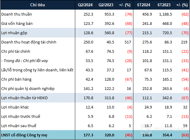Kết thúc 6 tháng đầu năm 2024, lãi ròng của NLG giảm 63% so với cùng kỳ, còn gần 131 tỷ đồng.