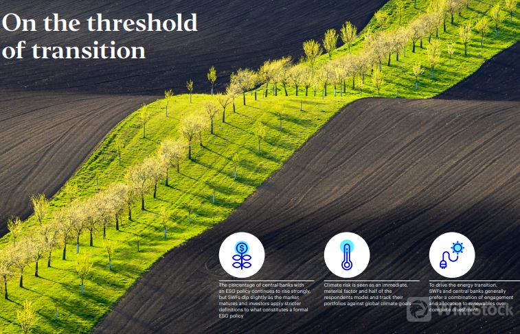 Theo khảo sát của Invesco, 30% quỹ đầu tư quốc gia và ngân hàng trung ương xem chuyển đổi năng lượng là chủ đề đầu tư ưu tiên phân bổ tài sản. Hiện tại, 27% trong số họ đang nắm giữ các khoản đầu tư vào công nghệ sạch và tái tạo.