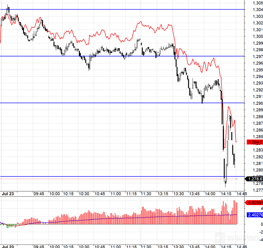 Phía dưới 1290.xx là vùng mở biên độ rất rộng tới tận 1279.xx. Nếu chú ý thì ngay trước khi VN30 bị đánh thủng 1290.xx, F1 đã co basis lại rất nhanh, cho thấy có một đợt Short tăng cường. Dù vậy việc Short đuổi sau khi VN30 thủng 1290.xx cũng không đem lại hiệu quả vì tốc độ giao dịch quá nhanh và các lệnh Long, Short được quăng vào hệ thống một cách hỗn loạn không biết đâu là giá có thể khớp. VN30 có tới xuống đúng 1279.xx nhưng F1 thì không.