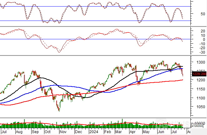 Bên cạnh đó, giá cổ phiếu tiếp tục giảm điểm và cắt xuống đường SMA 200 ngày trong bối cảnh chỉ báo MACD xuất hiện tín hiệu bán trở lại cho thấy xu hướng hiện tại có thể tiếp diễn trong các phiên tới.