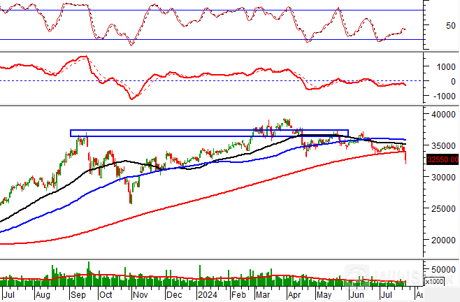 Trong phiên sáng 24/07/2024, SSI giảm giá mạnh cùng với khối lượng giao dịch vượt mức trung bình 20 phiên cho thấy tâm lý hoảng loạn của các nhà đầu tư.