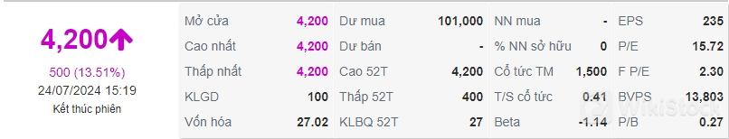 Cổ phiếu vận tải xăng dầu này tăng bốc đầu ngay sau khi doanh nghiệp vừa chia cổ tức tiền mặt tỷ lệ khá cao. Theo đó, đầu tháng 7 này, PTX đã chi gần 10 tỷ đồng để trả cổ tức năm 2023 với tỷ lệ 15% bằng tiền theo danh sách chốt ngày 18/6.
