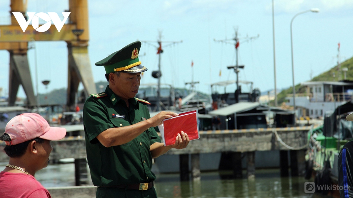 Bộ đội Biên phòng tỉnh Bình Định kiểm tra giấy tờ của tàu cá trước khi tàu xuất bến
