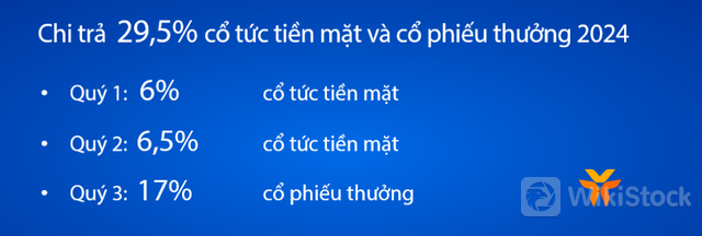 Ngân hàng đã hoàn tất chi trả 12,5% cổ tức bằng tiền mặt và dự kiến hoàn thành chi trả 17% cổ phiếu thưởng cho cổ đông hiện hữu cùng với hơn 11 triệu cổ phiếu thưởng ESOP cho cán bộ nhân viên trong quý 3.