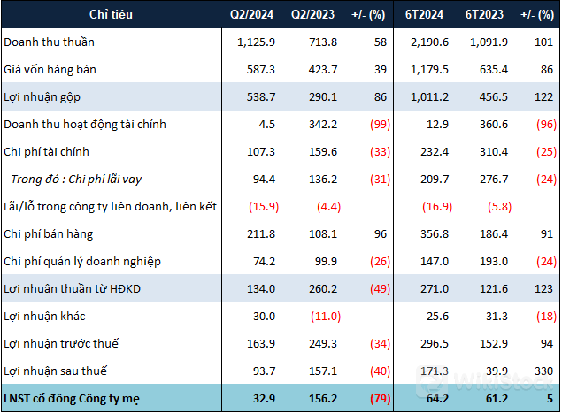 Kết quả kinh doanh của PAP trong quý 2 và 6 tháng đầu năm 2024. Đvt: Tỷ đồng![]() |