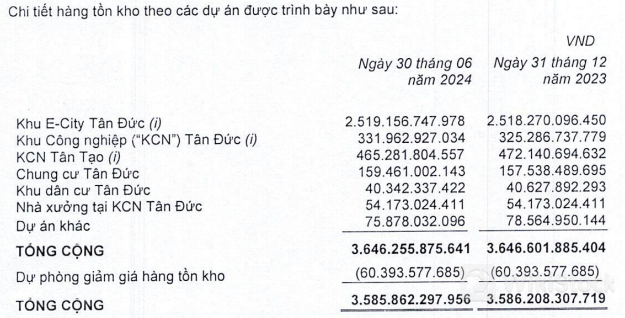 Tổng tài sản ITA tính đến ngày 30/06/2024 ở mức gần 12,245 tỷ đồng, tăng nhẹ 1% so với đầu năm. Trong đó, lượng tiền mặt hơn 100 tỷ đồng, gấp đôi đầu năm; các khoản phải thu ngắn hạn tăng 51% lên 1,923 tỷ đồng; trong khi hàng tồn kho không đổi ở mức gần 3,586 tỷ đồng, chiếm 29% tổng tài sản, tập trung phần lớn tại dự án khu E-City Tân Đức hơn 2,519 tỷ đồng.