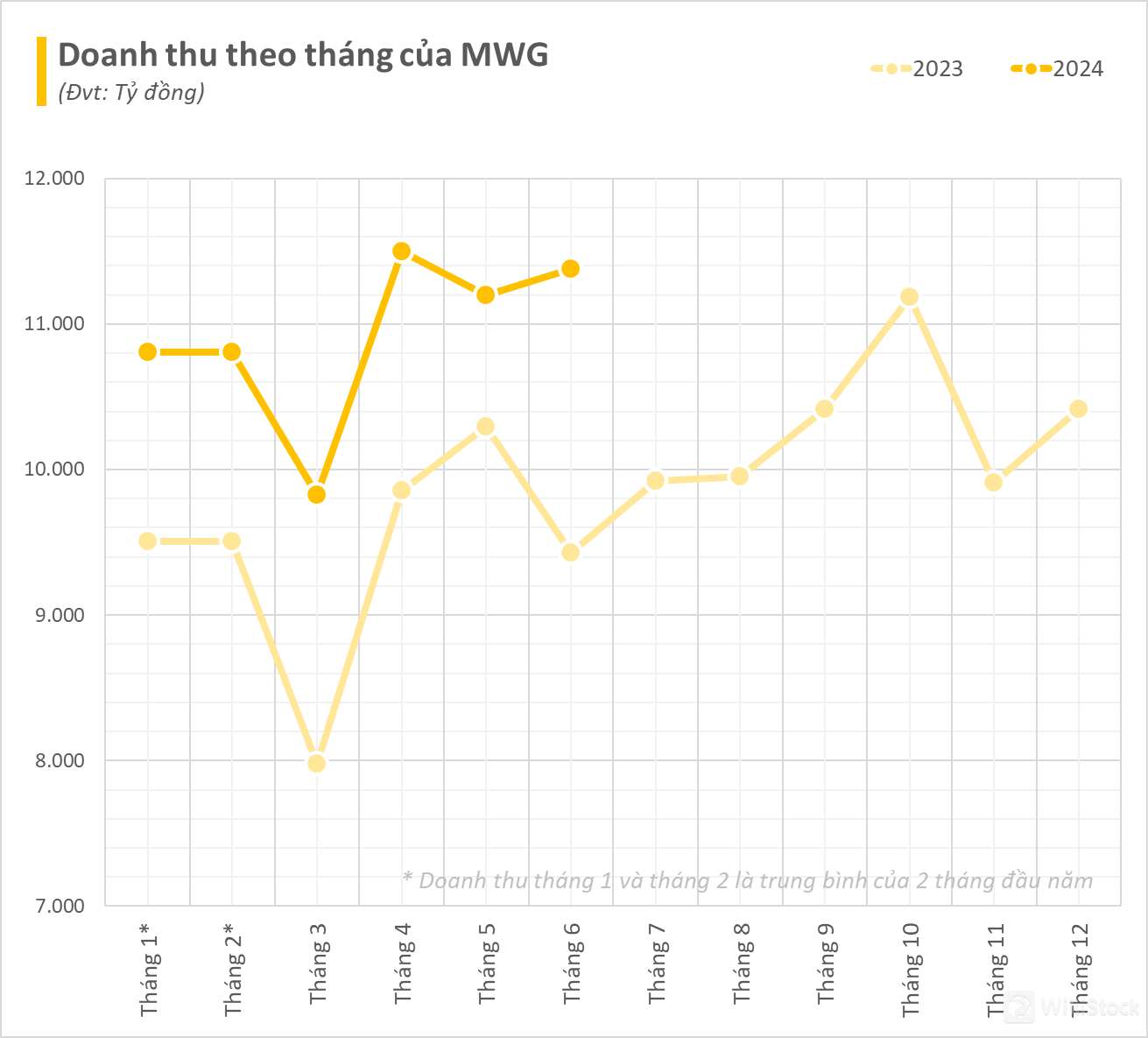Tính riêng trong tháng 6/2024, doanh thu MWG ước đạt 11.381 tỷ đồng, tăng 21% so với cùng kỳ năm trước.