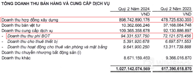 Quý 2/2024, Tập đoàn CIENCO4 mang về doanh thu thuần 1,027 tỷ đồng, tăng 66% so với cùng kỳ, nhờ doanh thu từ hợp đồng xây dựng gần 899 tỷ đồng (tăng 88%), doanh thu từ thu phí BOT cũng tăng 31% lên hơn 94 tỷ đồng.