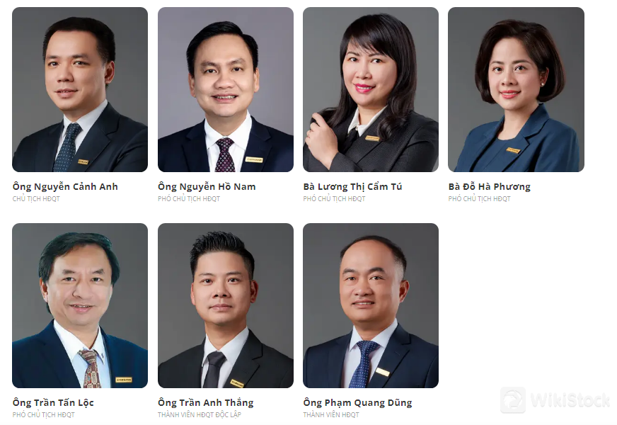 Báo cáo quản trị bán niên 2024 của Eximbank cho thấy, ông Nguyễn Cảnh Anh là Chủ tịch HĐQT; 4 Phó Chủ tịch là ông Nguyễn Hồ Nam, bà Lương Thị Cẩm Tú, bà Đỗ Hà Phương, ông Trần Tấn Lộc; còn lại là ông Phạm Quang Dũng - Thành viên HĐQT và ông Trần Anh Thắng - Thành viên độc lập HĐQT.