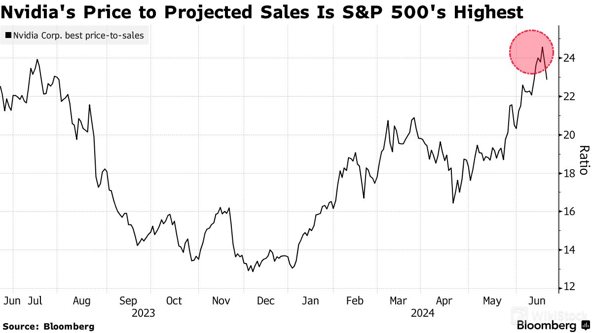 当然,也有很多交易员仅仅是基于英伟达的动能技术势头而买入该股。英伟达今年以来暴涨170%,并于上周二超越微软(MSFT.US.),一度以3.34万亿美元的市值短暂成为全球市值最高公司。美国银行对EPFRGlobal数据的分析显示,截至6月19日,这轮上涨推动各类科技型基金在上周获得创纪录的87亿美元资金支持。但是此后在“三巫日”抛压之下英伟达的股价下跌约6.7%,市值蒸发了2000多亿美元。