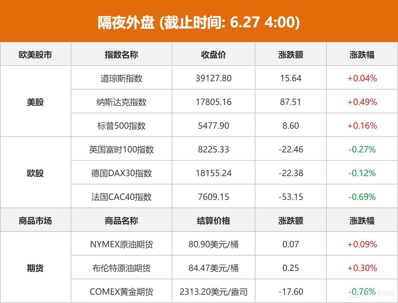 美股市场:美股三大指数小幅上涨,截至当天收盘,道琼斯工业平均指数比前一交易日上涨15.64点,收于39127.80点,涨幅为0.04%;标准普尔500种股票指数上涨8.60点,收于5477.90点,涨幅为0.16%;纳斯达克综合指数上涨87.51点,收于17805.16点,涨幅为0.49%。