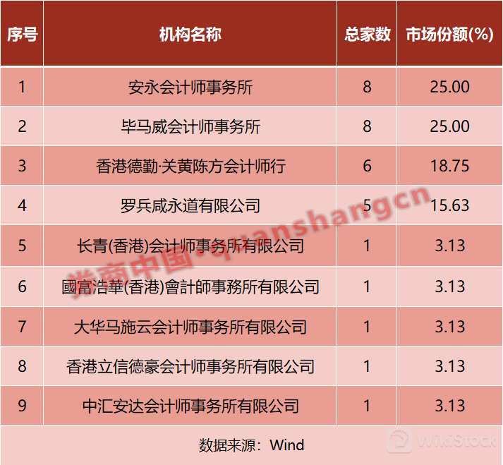审计机构排行榜中,四大国际会计所的集中度很高,其中安永和毕马威会计所均以8单IPO、25%的市场份额并列首位,其次是德勤·关黄陈方会计所获得6单IPO,市场份额18.75%;罗兵咸永道会计所则有5单IPO,市场份额15.63%。