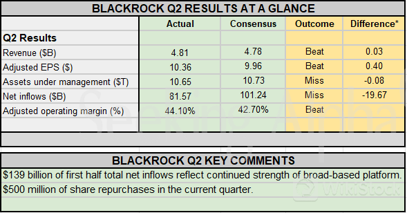 第二季度,贝莱德调整后每股净利润同比增长12%,达到10.36美元,超过市场普遍预期的9.96美元。营收同比增长8%,至48亿美元。