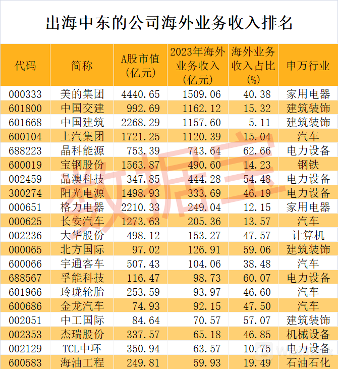 事实上,布局中东的公司早已将业务触及海外市场,且出海业务成为上市公司重要业绩来源。