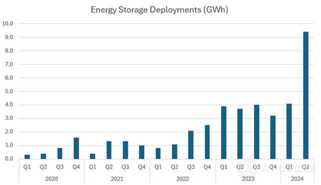 根据最新公布的数据,第二季度,该公司储能产品部署量升至9.4GWh,创下了公司纪录,是其之前最大季度部署量的两倍多,同比增长157%。