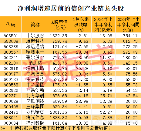 从半年报业绩预告情况来看,部分信创产业链龙头股业绩喜人。据数据宝统计,按照预告净利润下限计算(无下限则取公告数值),6只股票上半年净利润预计翻倍增长(含扭亏为盈)。