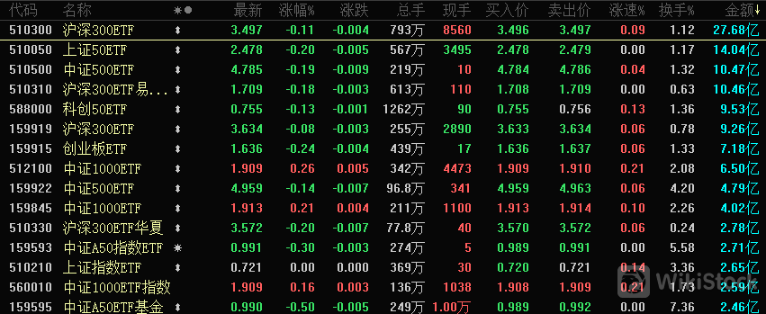 值得注意是,早盘多只宽基EFT明显放量,其中沪深300ETF半日成交27.7亿元(昨日全天成交32.4亿元),上证50ETF、中证500ETF、沪深300ETF易方达均相比昨日明显放量,其中沪深300ETF易方达早盘成交额已超昨日全天。