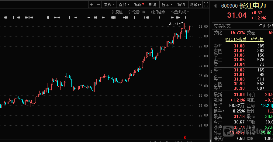 高股息阵营继续走强,核电双龙中国广核(003816)、中国核电(601985)双双涨超3%,创历史新高,长江电力(600900)、工商银行、交通银行、华能水电(600025)、川投能源(600674)同步刷新历史高点。