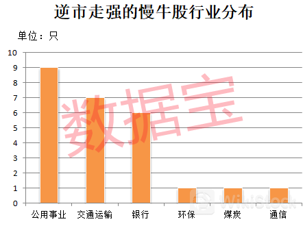 数据宝以上市超两年的股票为基础,筛选出股价逆市上涨的慢牛股。具体条件如下: