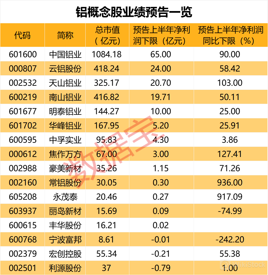 铝业股业绩预喜