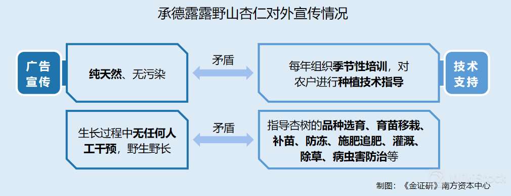可见,承德露露称,其露露杏仁露“野生野长”原料野山杏仁在生长过程中无任何人工干预,野生野长。而上述信息却显示,露露杏仁露的原料“野山杏”的生长过程中需要农户进行干预,且承德露露也会对农户进行技术指导。两者是否存在矛盾?