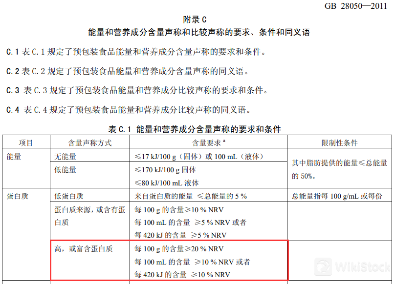 据2013年1月1日实施且现行有效的《食品安全国家标准预包装食品营养标签通则》,蛋白质每100ml的含量≥10%NVR,对应含量声称方式为“高,或富含蛋白质”。