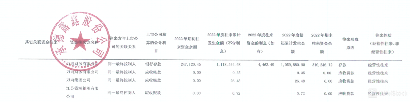 但《金证研》南方资本中心研究发现,该表的表头却显示为“2022年期初往来资金余额”、“2022年度往来累计发生额(不含利息)”、“2022年度往来资金的利息(如有)”、“2022年度偿还累计发生金额”、“2022年期末往来资金余额”。