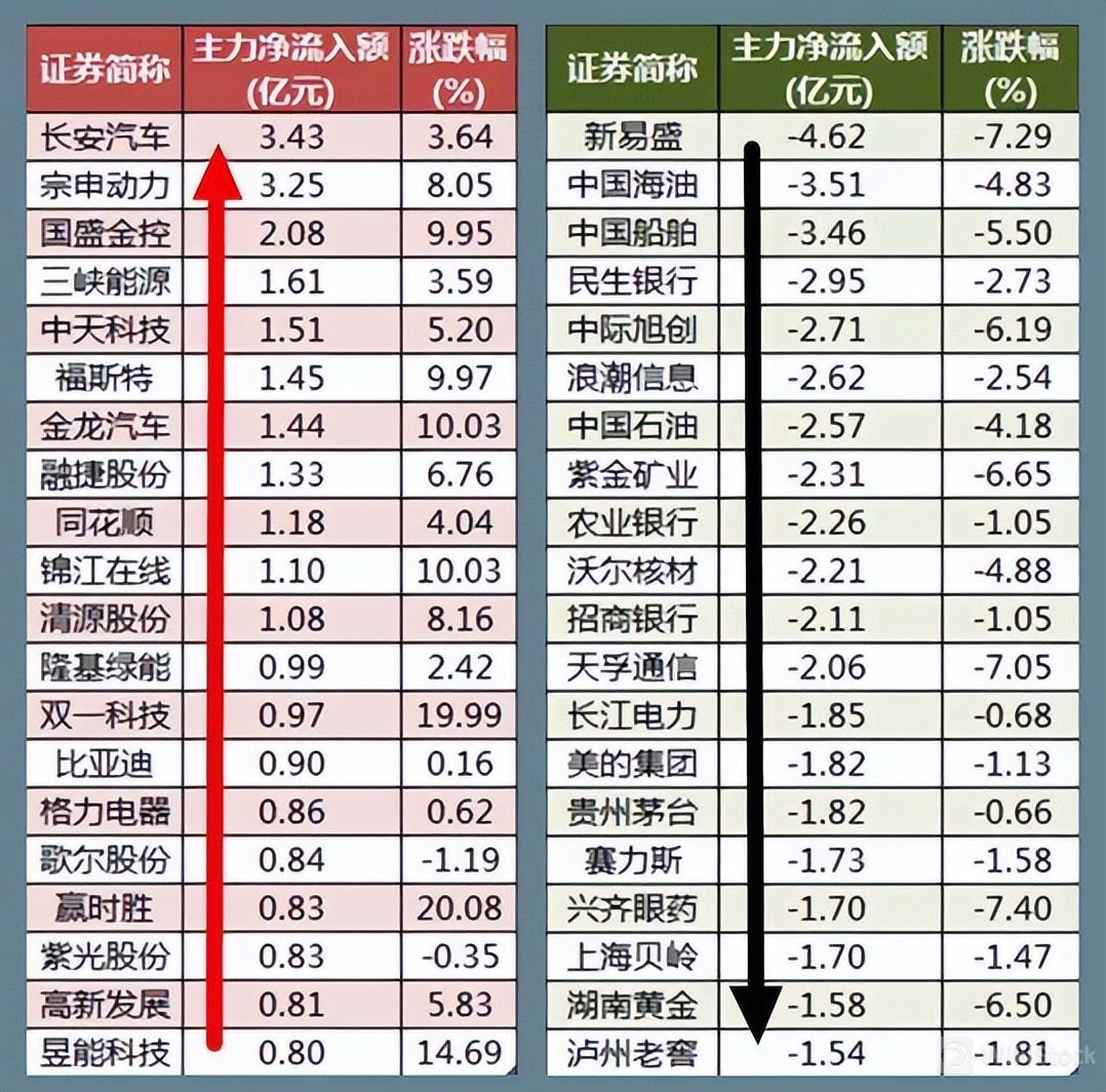 板块资金流向如下——