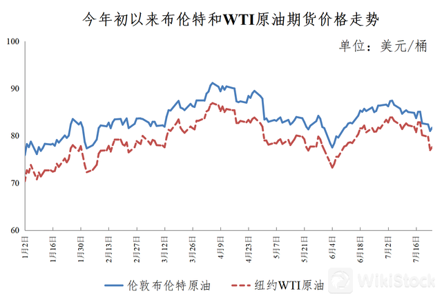 wind数据显示,7月11日,美油8月合约报82.84美元/桶,布油9月合约报85.50美元/桶。而在本轮成品油调价周期内,国际油价出现多次小幅下跌,7月23日,国际油价全线下跌,美油9月合约跌1.19%,报77.47美元/桶。布油9月合约跌1.03%,报81.55美元/桶。