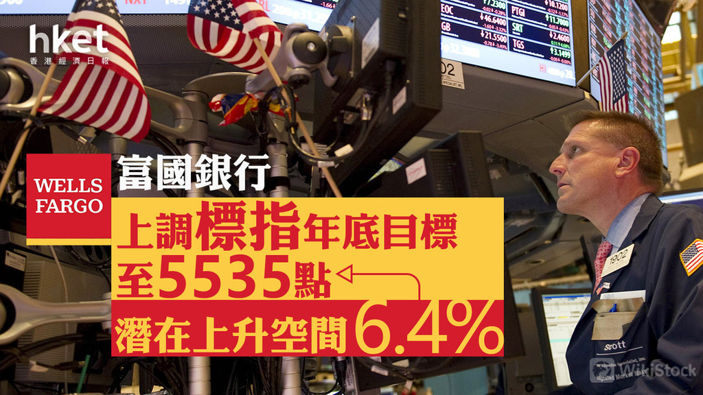 富國銀行(Wells Fargo)將標普500指數年底目標位上調至5535點,為華爾街大行中看得最高之一。按標普500指數周一收報5202點計,意味潛在上升空間達6.4%。