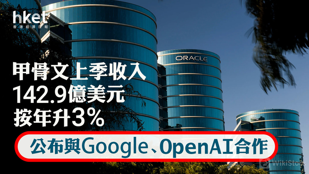 甲骨文(Oracle 美:ORCL)公布季度業績。甲骨文上季收入142.9億美元,低於市場預期的145.5億美元,經調整每股收益1.63美元,亦低於預期的1.65美元。雖然業績遜預期,不過甲骨文公布分別與Google及OpenAI合作,甲骨文股價盤後升9.5%,報135.6美元。