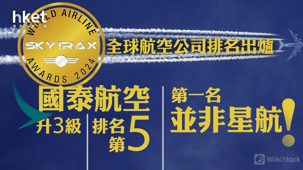 【Skytrax2024/排名/國泰/新航】被稱為航空界奧斯卡的英國航空運輸評級機構SKYTRAX,公布2024年全球最佳百大航空公司(Worlds Top 100 Airlines 2024),卡塔爾航空排名上升一級,取代新加坡航空,成為全球最佳航空公司。新加坡航空排名第二位。國泰航空 (00293)連升3級,排名第5位。