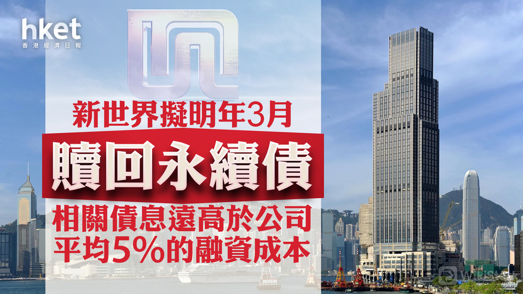 彭博引述消息報道,新世界發展 (00017)向部分投資者表示,公司有意於明年3月贖回永續債。消息指,若新世界放棄該批永續債的可贖回選項,永續債的息率將遠高於公司平均5%的融資成本。