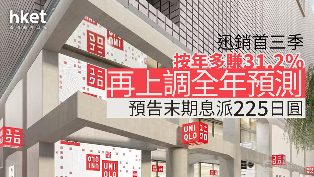 迅銷上調全年業績預測,最新估計全年母公司擁有人應佔溢利將為3650億日圓,按年增長23.2%。收益30700億日圓,升11%。