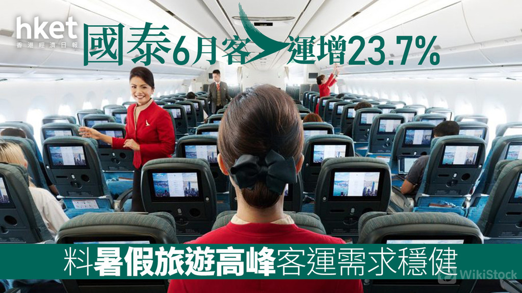 國泰航空6月載客指標「收入乘客千米數」按年上升 23.7%,客運運力指標「可用座位千米數」按年增加 30%。