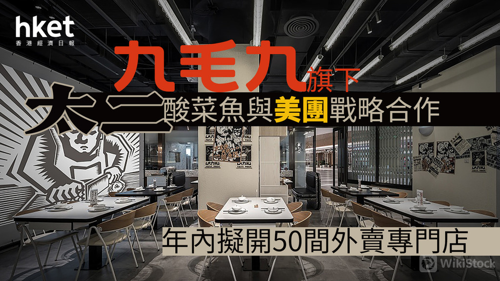 九毛九 (09922)旗下餐飲連鎖品牌太二酸菜魚據報宣布,將與美團 (03690)達成戰略合作,將在到家、到店等業務板塊開展更多探索。雙方表示,計劃2024年開出50家品牌衛星店(意指外賣專門店)。